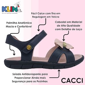 O cabedal é confeccionado com material de alta qualidade e traz um detalhe de laço que adiciona um toque lúdico e elegante ao visual. A estrutura se ajusta suavemente aos pés, proporcionando uma sensação confortável sem apertar. A palmilha, com formato anatômico e toque macio, oferece o suporte ideal para manter os pezinhos bem acomodados durante todo o tempo de uso.