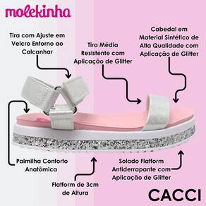 Deixe sua pequena brilhar com a Sandália Papete Brilho da Molekinha! Confortável, estilosa e cheia de detalhes encantadores, ela é a escolha ideal para quem quer combinar diversão e moda. Garanta já a sua e ilumine cada passo da sua menina!