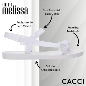A Sandália Mini Melissa Sun Downtown II é perfeita para deixar o dia das crianças ainda mais especial. Combinando design moderno e encantador, este modelo traz todo o charme do brilho aliado à segurança e praticidade que os pequenos precisam.