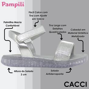 A Sandália Infantil Menina Conforto Metalizada Candy Pampili é a escolha perfeita para quem busca estilo e conforto em um único produto. Toda em um elegante prata metalizado, ela traz um visual moderno e cheio de charme para o look das meninas.