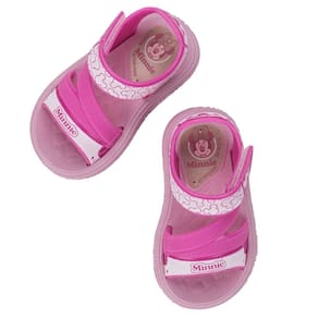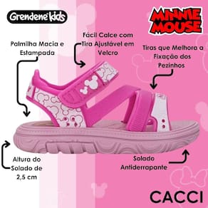 -Sandália com tiras estampadas trazendo elementos reconhecidos do Minnie;