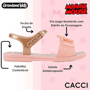 Design temático encantador: Estampa em detalhes inspirados na Minnie que dão um charme único à sandália.
