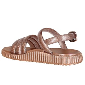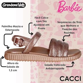A nova sandália Barbie Single possui sola em PVC Expandido, palmilha anatômica e tiras encantadoras em PVC Full Plastic com efeito Bubble. O fechamento é através de uma delicada fivela metalizada com regulagem e as tiras possuem maxi glitters deixando a Barbie Single ainda mais charmosa. -Barbie Single: repleta de textura, volumetria e maxi glitters; -Fechamento em fivela metalizada com regulagem; -Sola em PVC Expandido e tiras em PVC Full Plastic com efeito Bubble; -Assinatura e silhueta da Barbie na palmilha.