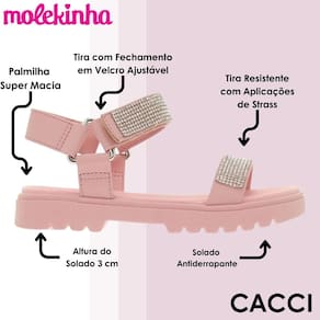 Estilo Elegante: As tiras com aplicação em strass adicionam um charme especial, tornando esta sandália uma peça que se destaca em qualquer look. É a escolha ideal para as pequenas que adoram estar na moda.