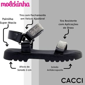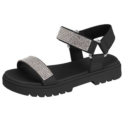 Estilo Elegante: As tiras com aplicação em strass adicionam um charme especial, tornando esta sandália uma peça que se destaca em qualquer look. É a escolha ideal para as pequenas que adoram estar na moda.