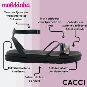 Sandália Infantil Menina Papete Conforto Strass Molekinha - 31 - Preto