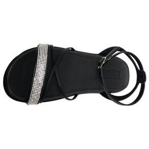 As tiras frontais, além de resistentes, vêm com uma aplicação de strass que adiciona brilho e sofisticação ao calçado. Elas não só garantem firmeza, mas também deixam a sandália ainda mais estilosa e cheia de personalidade.