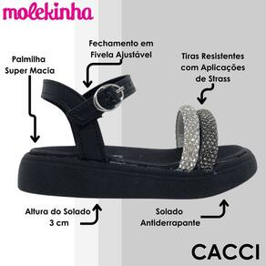 Sandália Infantil Menina Papete Conforto Strass Molekinha - 24 - Preto