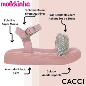 Sandália Infantil Menina Papete Conforto Strass Molekinha - 22 - Rosa