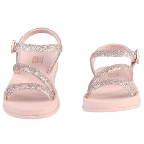 As tiras com muito brilho adicionam um charme especial, deixando o visual ainda mais encantador e cheio de personalidade. Além disso, a sandália prende atrás do pé, oferecendo um ajuste seguro e confortável para garantir que as pequenas possam brincar e explorar sem preocupação.