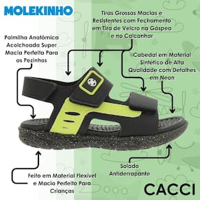 Com a Sandália Infantil Menino Conforto Anatômica Neon da Molekinho, seus pequenos estarão prontos para brilhar e se divertir com segurança e conforto em qualquer ocasião!