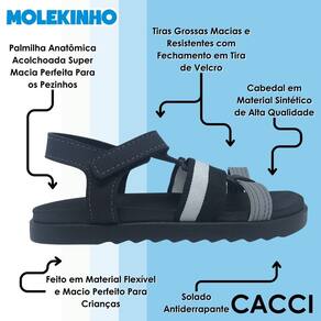 A Sandália Infantil Molekinho foi criada para acompanhar o ritmo cheio de energia dos meninos, garantindo conforto, segurança e estilo em todas as brincadeiras do dia. Com um design moderno e versátil, é ideal para o uso diário, seja em casa, nos passeios ou nas aventuras ao ar livre, proporcionando liberdade de movimentos e bem-estar a cada passo.