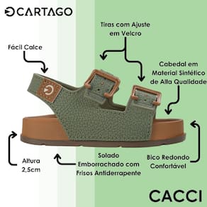 O efeito visual de camuflado e as cores clássicas fazem da Cartago Milão Baby uma sandália moderna e versátil, ideal para acompanhar os pequenos em diferentes ocasiões, sempre com muito estilo.