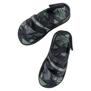 Conforto e praticidade: sandália com fechamento com tira autocolante, fácil de calçar e ajustar, ideal para o dia a dia dos pequenos aventureiros.