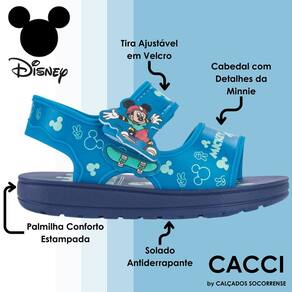 Esta sandália cativante apresenta uma parte superior confeccionada com materiais de alta qualidade, garantindo durabilidade e resistência ao desgaste, mesmo para as mais aventureiras. O destaque fica por conta dos adoráveis desenhos do Mickey Mouse que adornam a parte frontal da sandália, adicionando um toque de diversão e charme.