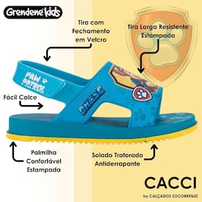A sandália que acompanha traz em evidência esses dois personagens tão queridos e para facilitar e ter praticidade no calçar o fechamento em tira autocolante.