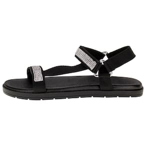 A Sandália Infantil Molekinha é confeccionada em tecido gorgurão com aplicação de strass no cabedal, acabamento em costura, fechamento por fita aderente, palmilha em EVA e solado em borracha antiderrapante.