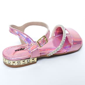 Sandália Infantil Molekinha Holográfica Tira Strass - Rosa - 34 - Rosa