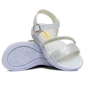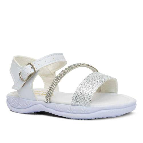 Confeccionado em material sintético, modelo tradicional. Possui correias com brilho, sola personalizada e antiderrapante.