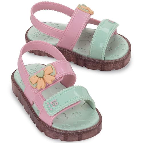 A Sandália Infantil Zaxynina Fofinha chega com mais fofurice do que nunca! Com tiras que simulam delicados babadinhos, o modelo ganha ainda mais charme com etiquetas decoradas com frutinhas ou lacinhos, trazendo um toque lúdico e divertido. A cartela de cores aposta em combinações adocicadas, efeitos translúcidos e muito glitter para um visual cheio de magia!