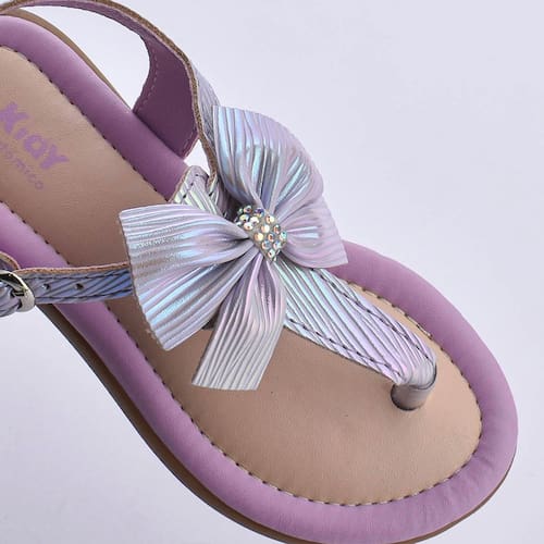 A Sandália Kidy Cristal Lilás é puro encanto para as pequenas que amam estilo e conforto. Com design delicado, laço sofisticado e detalhes brilhantes, ela é perfeita para compor looks especiais, sem abrir mão da segurança e do bem-estar. Seu solado em TR antiderrapante oferece aderência e estabilidade a cada passo. O modelo é anatômico e flexível, garantindo conforto prolongado e liberdade de movimento. O fechamento com fivela proporciona ajuste perfeito e seguro, enquanto o formato favorece um andar estável, ideal para acompanhar o dia a dia das meninas. Mais que uma sandália, um toque de charme e cuidado para cada passo da sua pequena princesa!