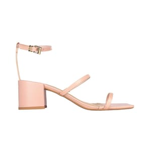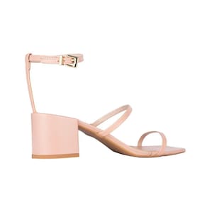 A sandália confeccionada em material confort é um modelo que combina estilo e praticidade. Com bico quadrado e salto médio bloco, design inclui tiras finas e uma tira adicional que contorna o tornozelo, com fechamento em fivela proporcionando ajuste elegante.