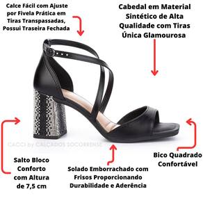 O salto bloco confere estabilidade e elegância, permitindo que você se destaque com confiança em qualquer ocasião. O conforto é a essência desta sandália, graças à sua palmilha macia e acolchoada, que garante uma experiência agradável durante todo o dia, seja no trabalho, em eventos sociais ou em um passeio descontraído.