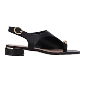 Sandália Luz da Lua Aplique Salto Baixo - 35 - Preto