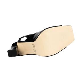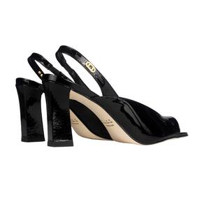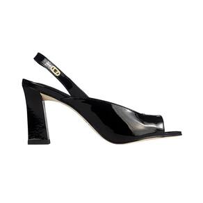 Sandália com cabedal premium e gáspea com recorte quadrado. Possui aplicação de metal na tira do lado externo e fechamento de tira fixa e elástico forrado no lado interno.