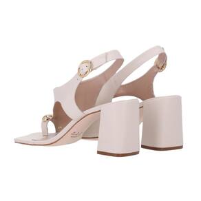 O modelo traz uma proposta minimalista e elegante, com foco no conforto e na estética refinada. A combinação do salto bloco com o aplique dourado oferece charme e versatilidade para diferentes ocasiões.