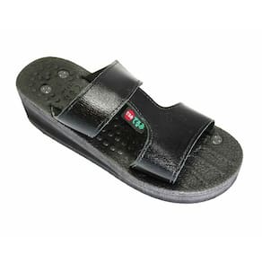 Detalhe Técnico: Sandália Feminina com Salto Charme II – couro polvora semi brilho com tecnologia em reflexologia e magnetoterapia. A Sandália Charme II foi desenvolvida para oferecer elegância, estabilidade e benefícios integrados ao uso diário. Produzida em couro polvora semi brilho, de textura macia e toque suave, seu cabedal envolve os pés com firmeza e conforto, proporcionando excelente ajuste anatômico, sem pontos de pressão. O modelo possui salto e estruturado, que favorece o alinhamento postural e distribuição equilibrada do peso corporal, ideal para quem busca sofisticação sem comprometer a saúde dos pés. A palmilha é anatomicamente desenhada com saliências distribuídas conforme os pontos de reflexologia podal e da técnica oriental Doin, estimulando a planta dos pés a cada passo. Esse estímulo contínuo atua de forma direta na melhora da circulação periférica, no relaxamento muscular e no alívio de tensões acumuladas. Além disso, a base conta com magnetos estrategicamente posicionados, aplicando a magnetoterapia passiva, que favorece o equilíbrio energético, redução de inchaços, oxigenação dos tecidos e recuperação muscular. Características Técnicas: Material: Couro polvora semi brilho preto – macio, resistente e com acabamento natural Palmilha anatômica: com saliências para reflexologia e estímulo Doin Tecnologia magnética: 14 magnetos distribuídos conforme pontos de podologia energética Salto firme e com boa base de apoio Solado: EVA leve, com absorção de impacto e aderência Indicação: Uso diário; ideal para quem busca conforto, alívio de dores plantares e estimulação contínua