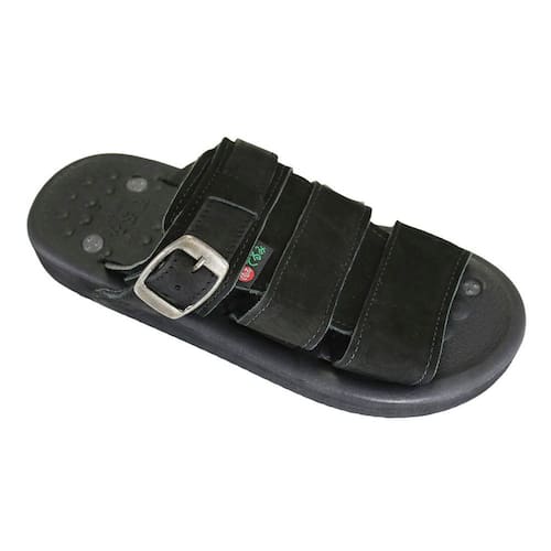 Seu design robusto e funcional acomoda os pés com segurança, enquanto a palmilha anatômica entra em ação: equipada com saliências posicionadas de acordo com os pontos da reflexologia podal e da técnica oriental Doin, ela proporciona uma massagem suave e contínua durante a caminhada, estimulando a circulação e ajudando a aliviar dores e tensões acumuladas.