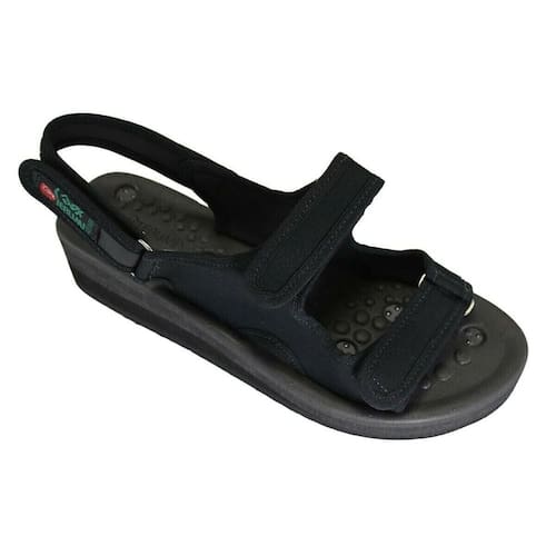 Detalhe Técnico: Sandália Mila – Modelo com ajustes em fita autocolante e base reflexológica. A Sandália Mila foi projetada para oferecer conforto anatômico, praticidade de ajuste e estímulos integrados. Confeccionada em tecido sintético preto de alta resistência, é leve, fácil de higienizar e possui excelente durabilidade. Seu design funcional conta com várias tiras com fechamento em fita autocolante, que permitem ajuste personalizado ao formato do pé, ideal para pessoas com inchaço, pés sensíveis, pés largos ou com mobilidade reduzida. O sistema de fita autocolantes facilita o calce, proporcionando maior autonomia ao usuário. A palmilha anatômica é equipada com saliências estrategicamente posicionadas, que atuam sobre os pontos da reflexologia podal e da técnica Doin, oferecendo massagem plantar contínua, ativação da circulação sanguínea e alívio de tensões musculares. Incorporados à base da sandália, 14 magnetos permanentes atuam por meio da magnetoterapia passiva, contribuindo para o equilíbrio energético do corpo, melhora na oxigenação dos tecidos, redução de dores e relaxamento físico. O solado em EVA expandido garante absorção de impacto, leveza e aderência, proporcionando segurança no uso prolongado. Especificações Técnicas: Material do cabedal: Tecido sintético preto Ajustes: 3 pontos de fita autocolante (antepé, peito do pé e calcanhar) Palmilha: Anatômica com saliências de reflexologia e Doin Magnetos: 14 unidades fixadas nos principais pontos reflexos Solado: EVA expandido – leve, flexível e com boa tração Indicação: Alívio de dores plantares, má circulação, sensação de peso nas pernas e uso prolongado com conforto Numeração disponível: 33 ao 41
