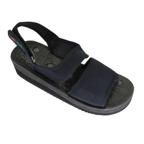 Detalhe Técnico: A Sandália Luna com salto foi projetada com base em princípios da reflexologia podal e magnetoterapia, unindo conforto ortopédico a estímulos terapêuticos contínuos. CARACTERÍSTICAS TÉCNICAS: Solado em EVA Expandido: Leve, flexível e com excelente absorção de impacto, reduz a sobrecarga nas articulações dos tornozelos, joelhos e coluna. Palmilha anatômica com saliências: Estrategicamente distribuídas para ativar pontos reflexos da planta dos pés, promovendo estímulos táteis que favorecem a circulação periférica e o equilíbrio funcional do organismo. Sistema de Magnetoterapia Integrado: Contém 14 magnetos posicionados segundo os principais pontos da reflexologia e da técnica oriental Doin, com campo magnético estático que auxilia na melhora da oxigenação dos tecidos, relaxamento muscular e aumento da vitalidade. Cabedal em material sintético resistente e lavável: Confortável, de secagem rápida e fácil higienização. Design ergonômico com ajuste firme: Adaptável a diferentes tipos de pés, garantindo segurança e estabilidade no caminhar.