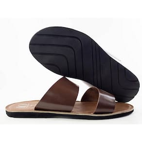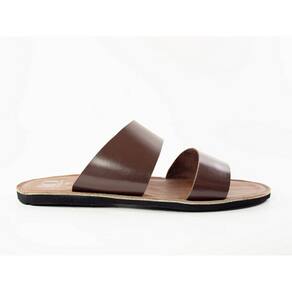 Sandália Masculina Couro Tiras Largas Rasteira Moderna - 43 - Marrom Chocolate