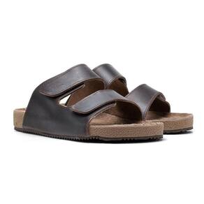 Sandália Masculina Feminina Papete Flatform Couro Ajustável - 33 - Sépia