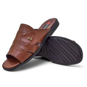 Sandália Masculina Franciscana Couro Ortopédica Rasteira - 38 - Marrom