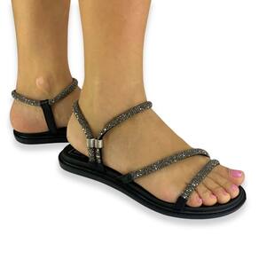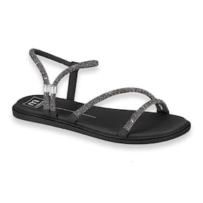 Sandália Moleca Flat Rasteira Tira Brilhante Feminina Preta 342851
