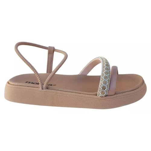 Sandália Moleca Plataforma Strass Feminina Nude - 35 - Bege