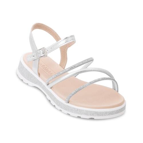 Encante-se com a elegância e o conforto da Sandália Molekinha Infantil! Confeccionada em material alternativo metalizado, ela oferece um brilho único que vai conquistar o olhar de todos. As tiras finas, delicadamente adornadas com aplicações de strass no cabedal, trazem um toque de glamour para os pés das pequenas. A palmilha em EVA macia garante conforto o dia todo, enquanto o fechamento com tira e fivela assegura um ajuste perfeito. A entressola com detalhe em glitter e o solado antiderrapante em EVA proporcionam estilo e segurança a cada passo. Uma escolha perfeita para momentos de diversão e elegância!