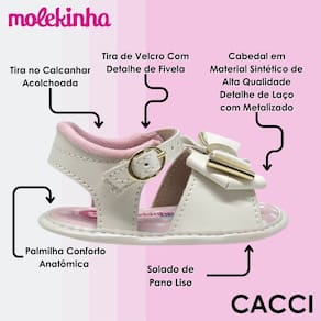 -Conforto: As Sandálias Molekinha Baby são projetadas com materiais macios e flexíveis para garantir o máximo de conforto aos pés dos bebês. Isso é essencial para que eles possam se movimentar e brincar sem restrições.