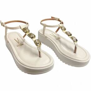 Sandália Papaete Feminina Flatform Vizzano Com Pedrarias - 34 - Branco