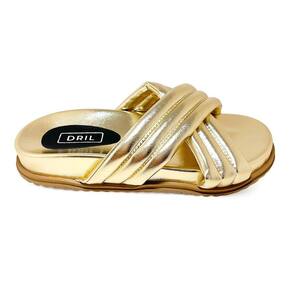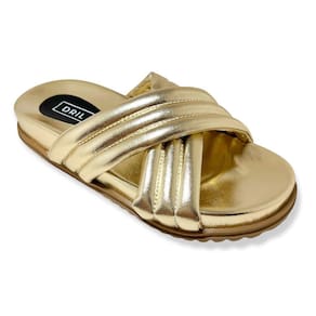 Sandália Papete Birkin Feminina Dourada Metalizada Tiras Cruzadas - 36 - Amarelo Ouro