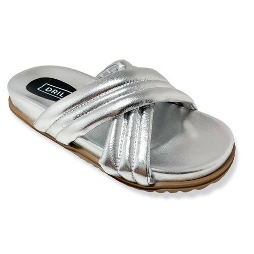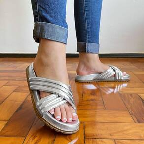 Sandália Papete Birkin Feminina Prata Metalizada Tiras Cruzadas - 36 - Prata