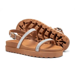Sandalia Papete de Strass Flatform Feminina Rasteirinha Tratorada Com Fivela Moderna Palmilha Macia - 39 - Marrom Cacau
