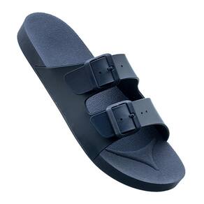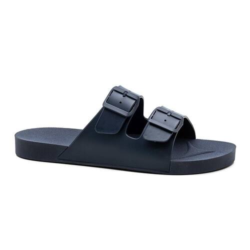 Sandália Papete Feminina Solado Flatform Fivela Conforto - 37 - Azul Marinho