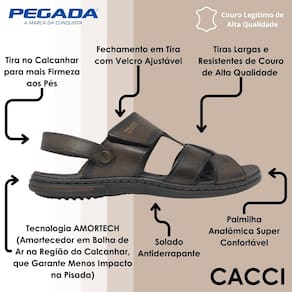A sandália masculina de couro da Pegada é a combinação perfeita de conforto, qualidade e praticidade. Com ela, você vai desfrutar de cada passo com mais leveza, segurança e estilo. Não deixe de experimentar essa novidade que vai transformar seu jeito de caminhar!