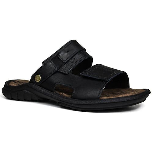 LINHA CHINELOS MASCULINOS Sandália estilo Papete Masculina de Couro, com Palmilha de P.U. revestida em Camurça. Indicado para finais de semanas em seus momentos de lazer.Descrição Técnica: Cor: Preto Cabedal (Parte Externa): Couro Palmilha Interna: P.U. com Formato Anatômico Revestida de Camurça Solado: Micro Expandido (Borracha) 100% Feito-à-mão / Confeccionado em Couro. Garantia: Os Calçados da nossa loja possuem garantia contra defeitos de fabricação.