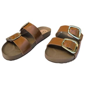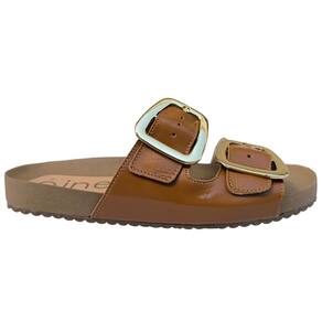 Sandália Papete Rasteira Couro Viena Fivela Confort Festas - Marrom Chocolate - 37