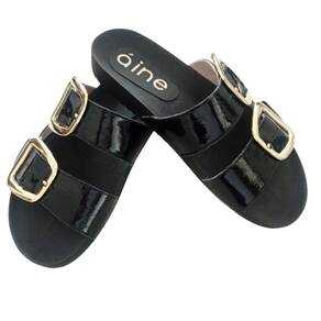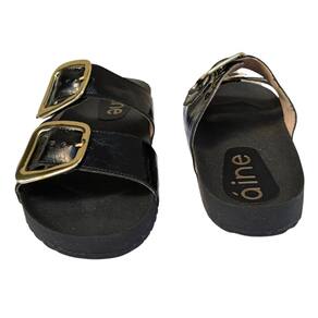 Sandália Papete Rasteira Couro Viena Fivela Confort Festas - Preto - 37